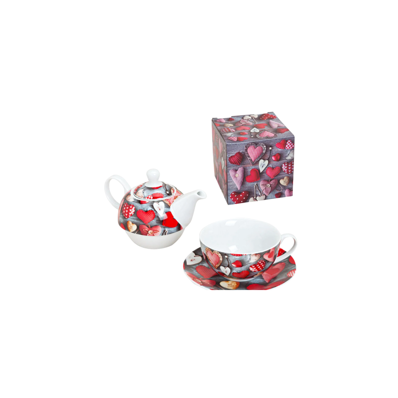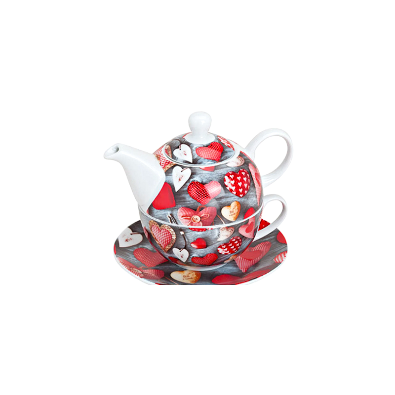 Solitaire à thé motif coeur en porcelaine.