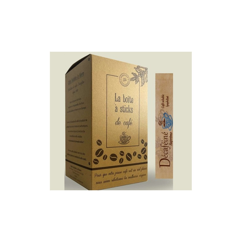 Boite de 50 sticks de 2g de café lyophilisé décaféiné SUPREMO.