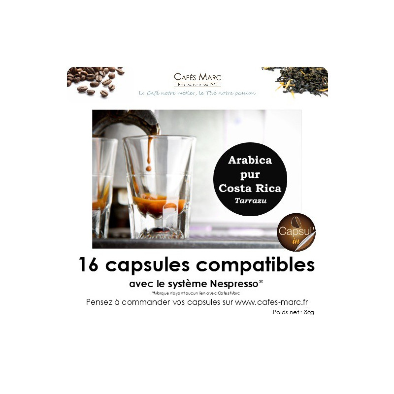 Capsules compatibles Nespresso®* pleines avec le café du Costa Rica Tarrazu fin et aromatique.