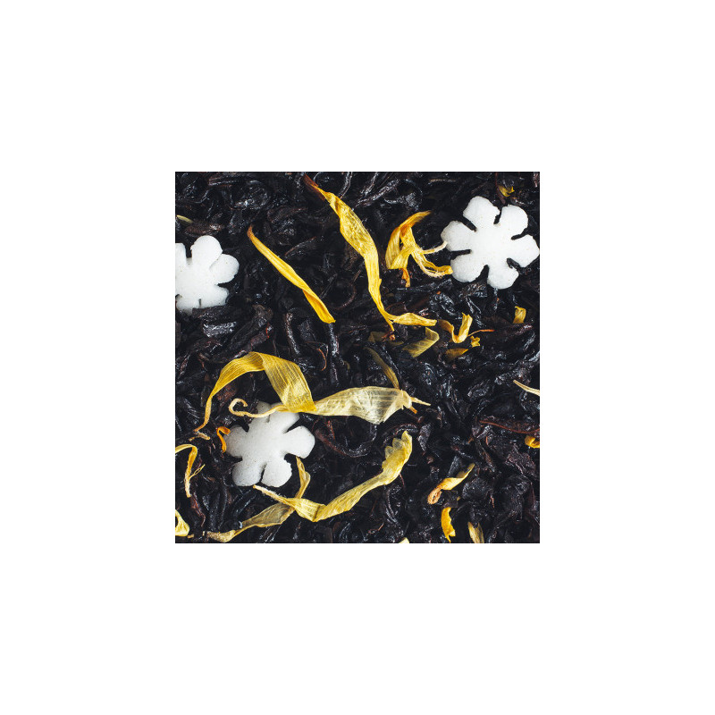 Mélange de thés noirs de Chine non fumés aromatisé amande, vanille, cerise et miel.