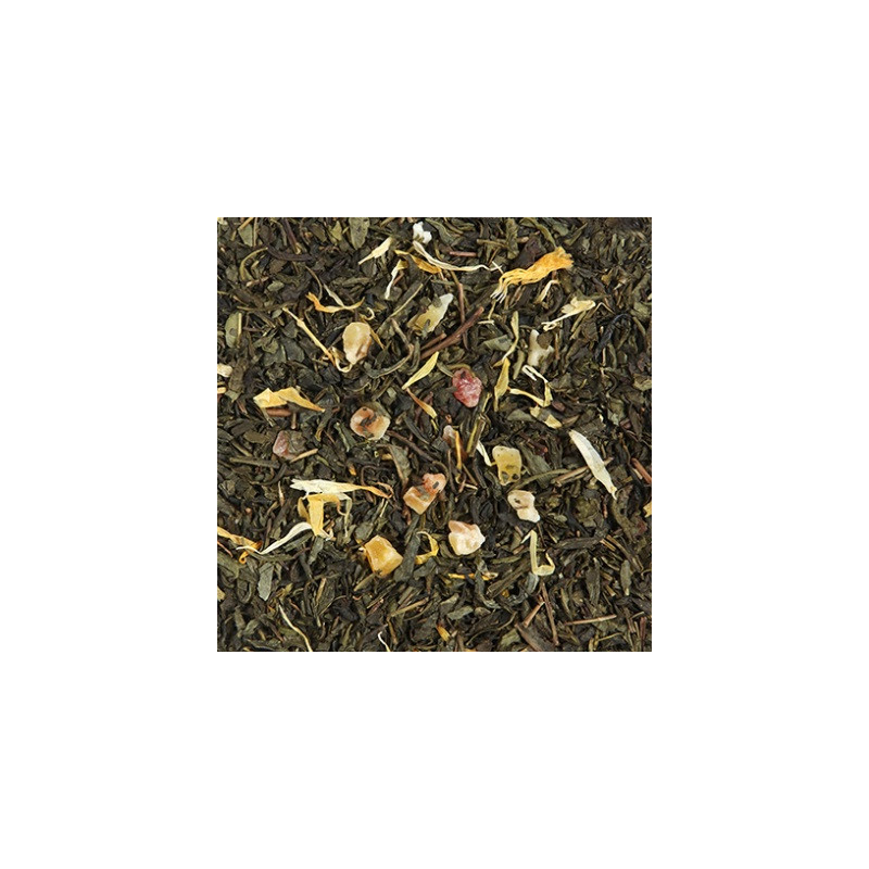 Thé vert de Chine aromatisé au fruit de la Passion et à l'ananas agrémenté de morceaux de papaye.
