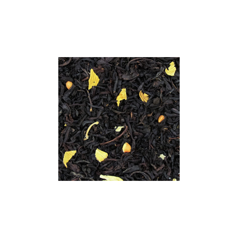 Thé noir de Chine non fumé aux doux parfums fruité de pomme et de coing pour une tasse légère au goût automnal agrémenté de graines de sarrasin et pétales de fleurs de tournesol.