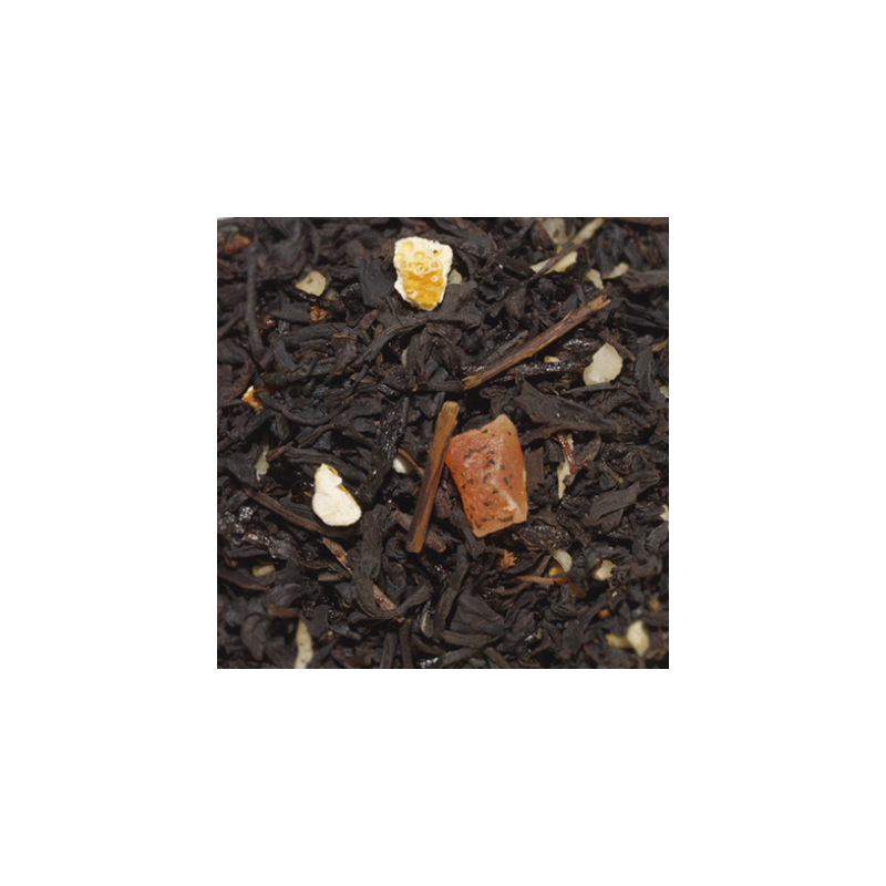 Mélange de thés noirs de Chine aromatisé mangue, noix de coco, ananas, citron vert, avec écorces d'orange de morceaux de papaye et de noix de coco rapée.