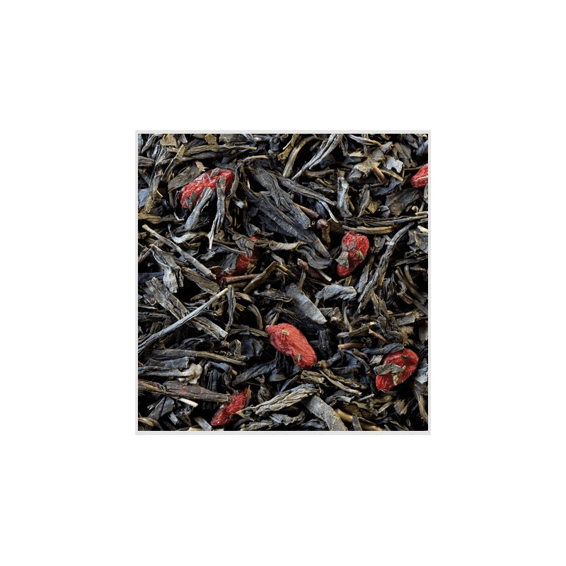 Mélange de Yunnan vert, de Sencha et de Chun mee, aromatisés au goji et parsemé de baies de goji.