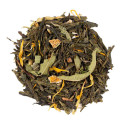 Thé vert de Chine Sencha aux arômes naturels de Mandarine et au pamplemousse et agrémenté de pétales de fleurs et d'écorces d'agrumes.