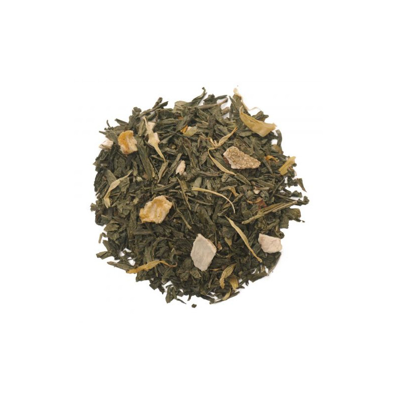 Thé vert China Sencha à feuilles entières délicatement parfumé aux arômes naturels de pêche et de figue de Barbarie.