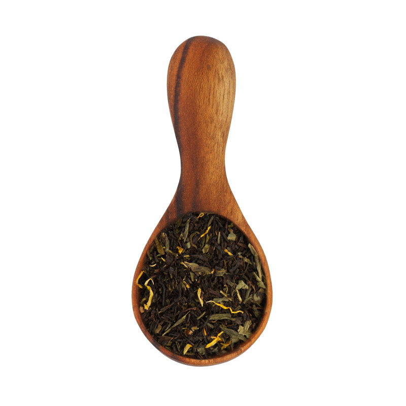 Thé noir et thé vert aromatisé aux parfums d'automne : châtaigne, prune, poire et raisin.