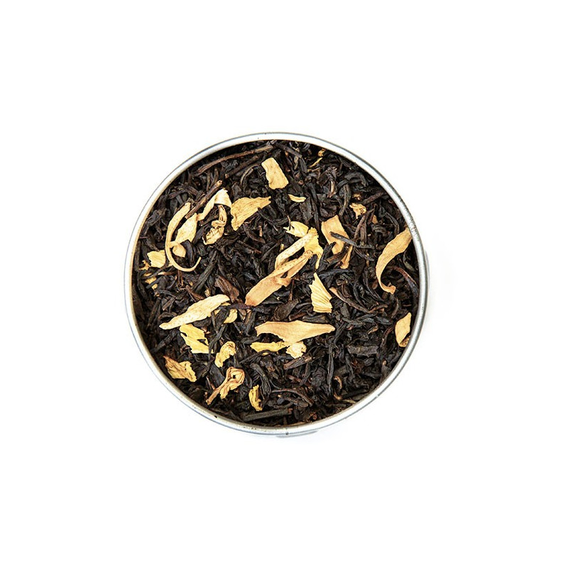 Mélange de thés noirs de Chine au doux parfum sucré de pêche, abricot et vanille.